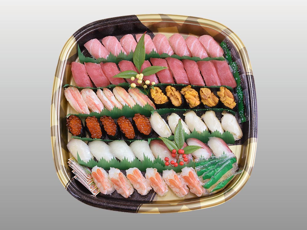 せっかくなのでお寿司が食べたい 生寿司盛合わせ ※広田湾産あわび入り 5〜6人前 8,500円(税込) 生寿司盛合わせ 5〜6人前 5,400円(税込) 巻き寿司盛合わせ 4〜5人前 2,500円(税込) まぐろ専科 20貫 3,400円(税込) まぐろ専科 12貫 2,160円(税込) ちらし寿司 600円(税込)〜